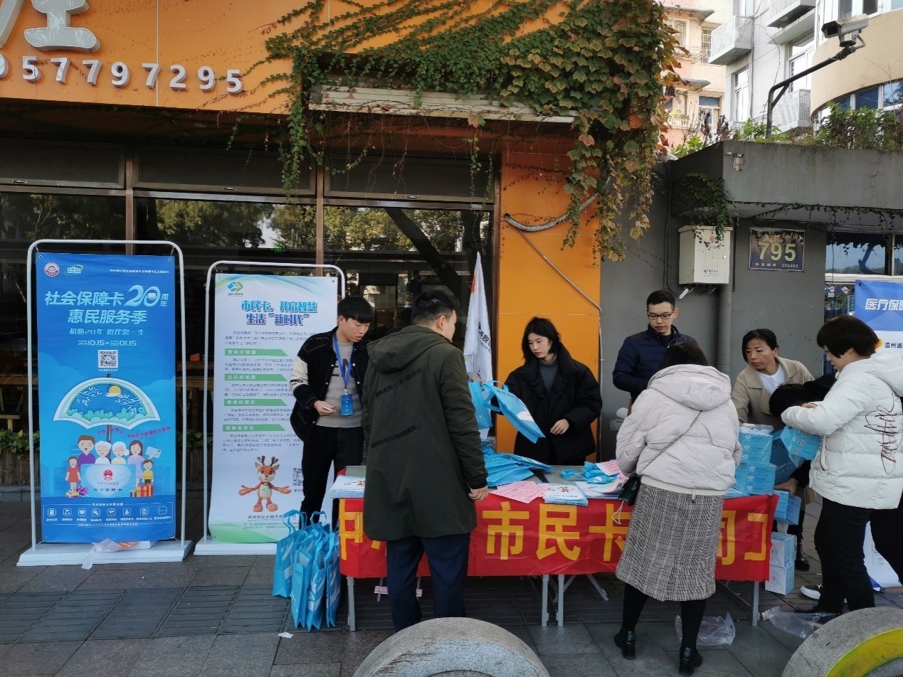 为进一步宣传市民卡旅游、健身和公共交通等惠民服务、普及电子社保卡申领,推广电子社保卡“扫码就医”服务,增强群众认知度和满意度,从12月7日上午开始,市民卡公司联合市社保中心、市职介中心、市总工会“技协帮”技术服务和家电维修队、金莎培训学校在滨江街道新田园社区、滨江街道灰桥社区、梧田街道明瓯社区和南汇街道南塘社区等人群较为集中的街道、社区开展为期一周的“市民卡服务进社区”宣传活动。